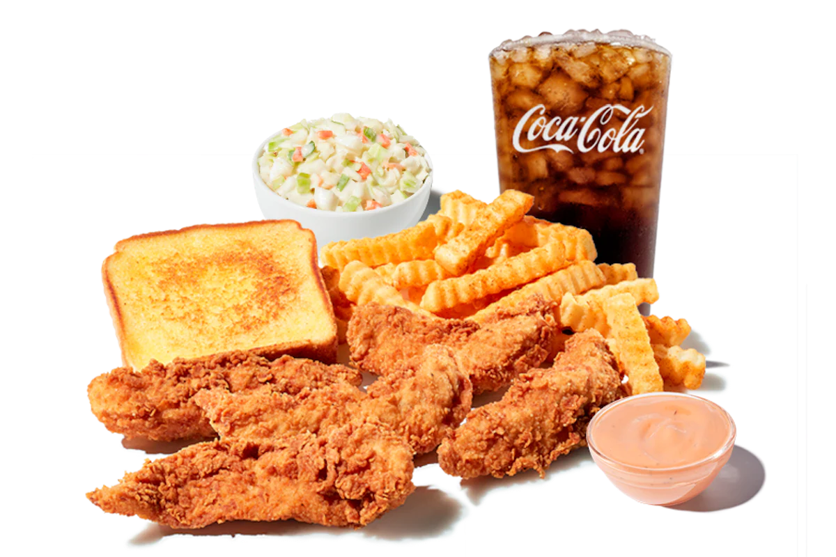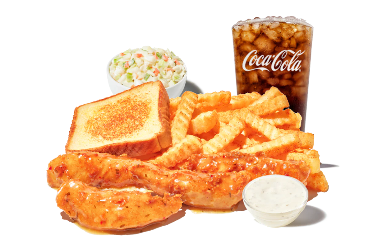 4, 5, or 6 hand-breaded Chicken Fingerz™ tossed in a Sweet Asian Glaze. Served with Cole Slaw, Texas Toast, Crinkle Fries, and Small Drink.