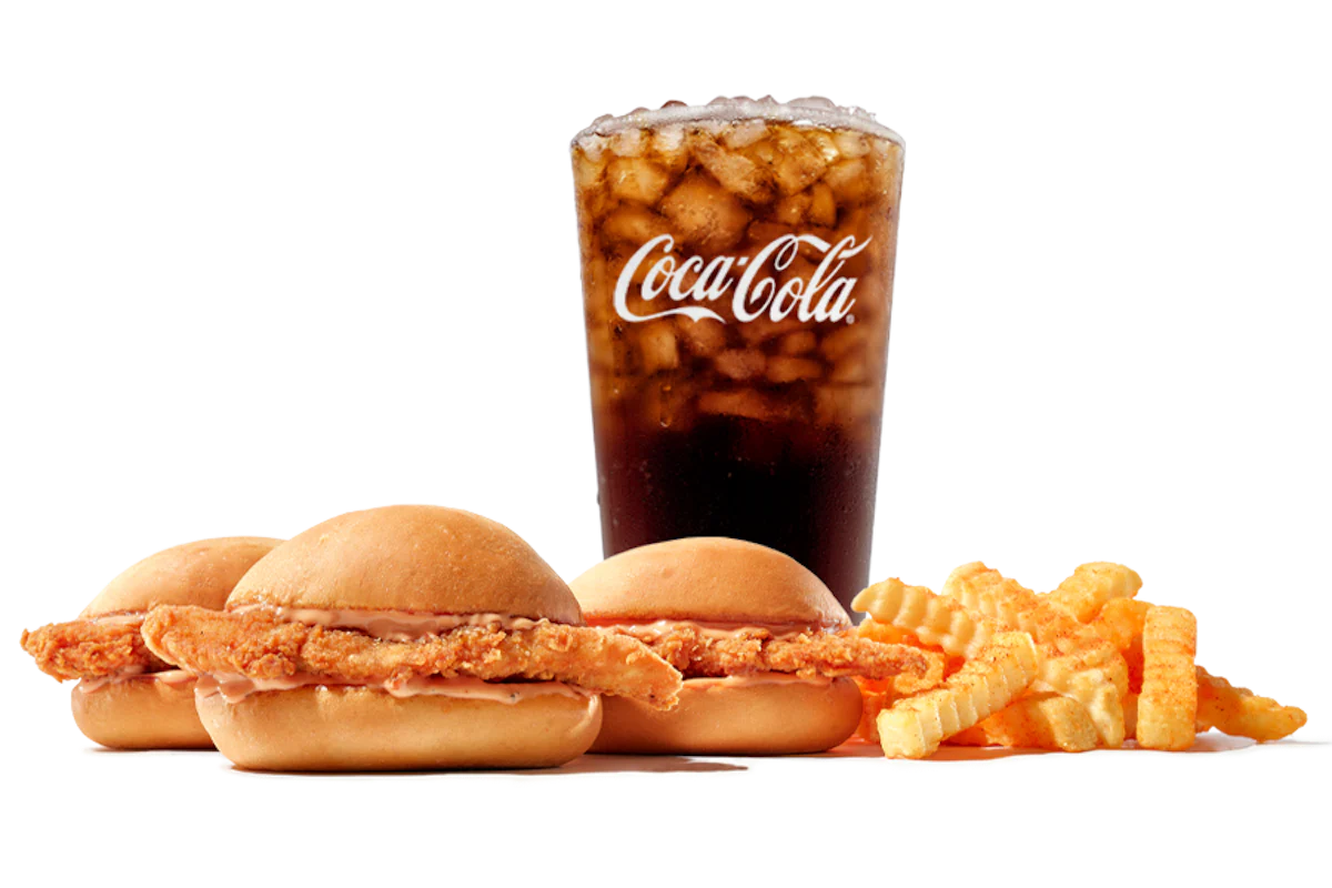3 Nibblerz® – hand-breaded Chicken Fingerz™ and Zax Sauce® on toasted buns – served with Crinkle Fries and Small Drink.